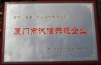 “2008 —2009年度廈門誠信示范企業(yè)”是廈門首個誠信企業(yè)評選活動。本活動由廈門市誠信促進(jìn)會、廈門市企業(yè)和企業(yè)家聯(lián)合會、各級政府機(jī)關(guān)等28個相關(guān)部門聯(lián)合開展,組委會本著“公開、公正、公平”的原則首次在全市范圍內(nèi)共同開展誠信示范企業(yè)的評選。經(jīng)過一系列激烈的競爭及組委會的嚴(yán)格評選,本企業(yè)最終獲得了 “2008—2009年度廈門市誠信示范企業(yè)”的榮譽(yù)稱號。