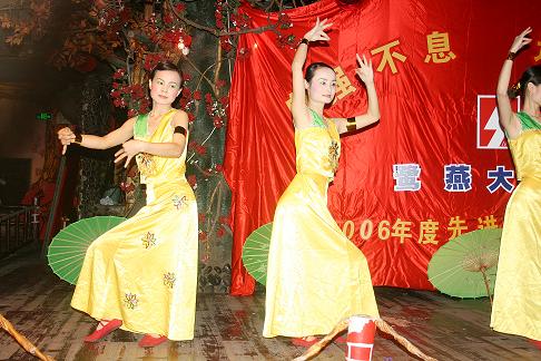 下午4:00整,在《好日子》歡快的歌舞中,表彰聯歡會正式拉開了序幕。會上共頒發了九個獎項,分別是最佳員工獎6人,最佳藥師獎2人,最佳新人獎、最佳參與獎、最佳貢獻獎各1人,最佳店長獎3人,最佳門店獎2個,還有兩個特殊的獎項:一是半年度毛利考核指標完成相對值、絕對值各前3名的門店,二是2000年8月前入職的老員工獎。頒獎過程中還穿插了員工們自編、自導、自演的小節目。他們用優美的舞姿、甜美的歌聲、俏皮搞笑的小品為杰出的先進代表們喝彩、祝福,現場氣氛非常活躍,高潮迭起,一張張如花的笑靨遨游在一片歡樂的海洋……最后,在《感恩的心》的優美的旋律和熱烈的掌聲中,活動暫告一個段落。