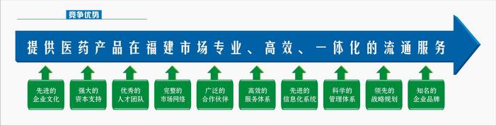 我們致力于提供多樣化的增值服務,成為福建省最具增值能力的流通服務商。通過業務網絡的協同、相關硬件的投入及ERP 在全省范圍的聯網,公司能為客戶提供商業合作、物流配送、信息查詢、藥品推廣、藥事服務、方案咨詢等多樣化的服務。
